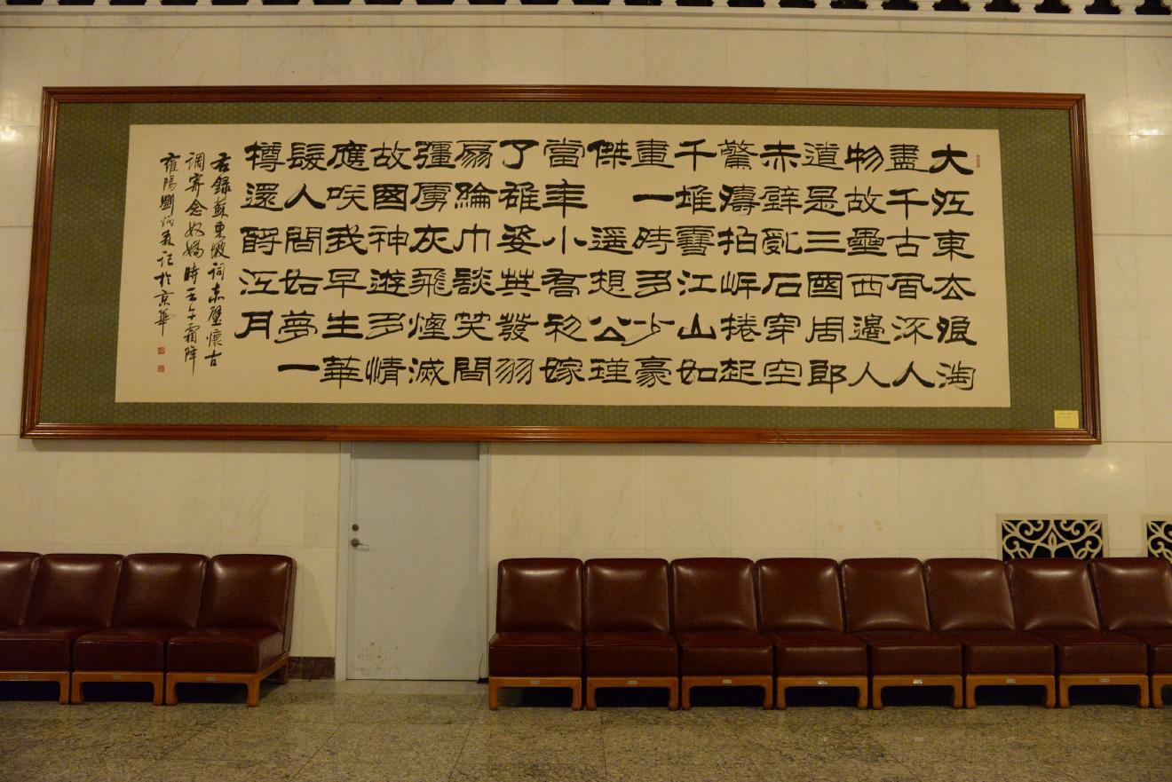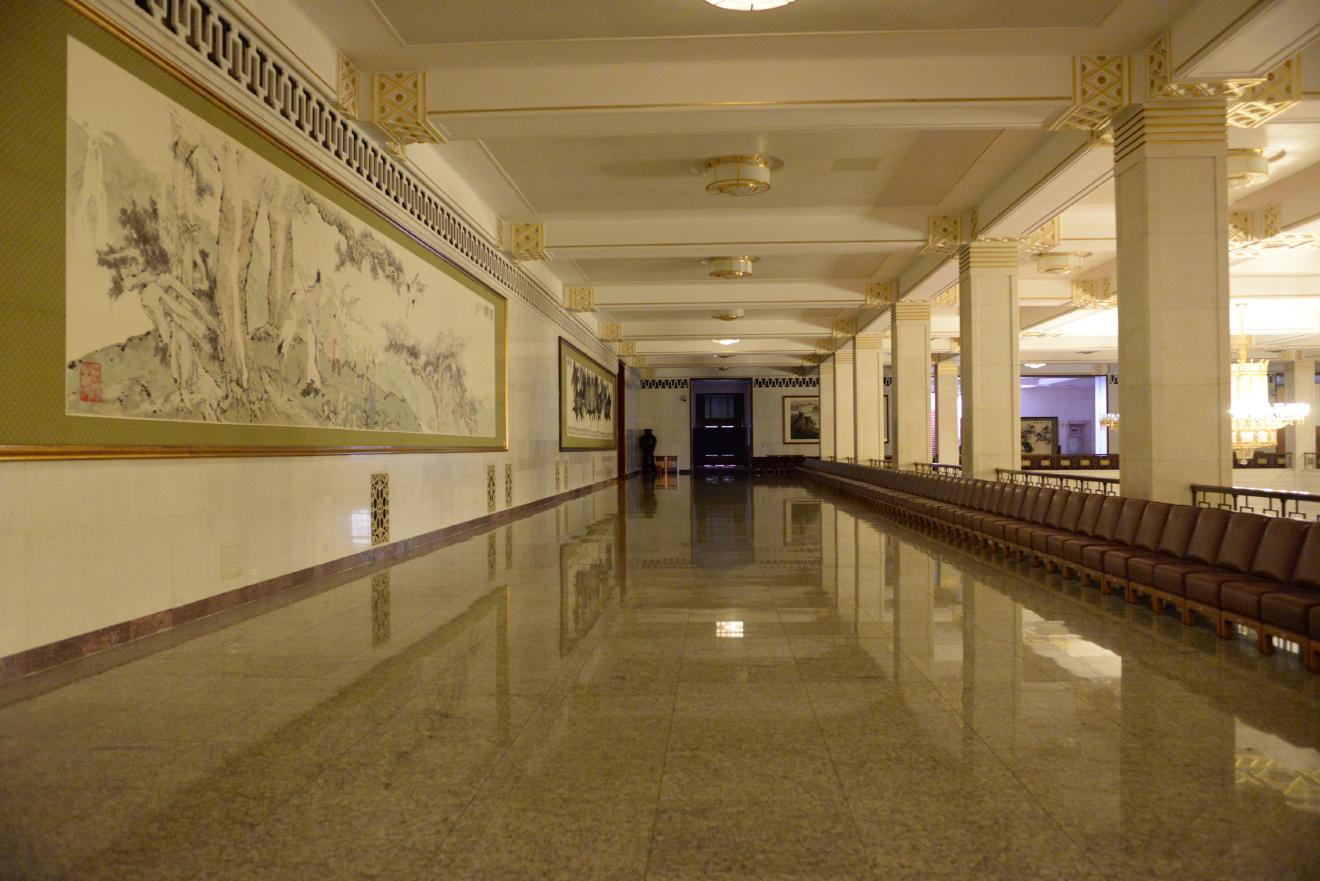 人民大会堂はさすがに外国の賓客を迎える場所だけあって、通路のあちこちに絵画や書、壺などが置かれています。
