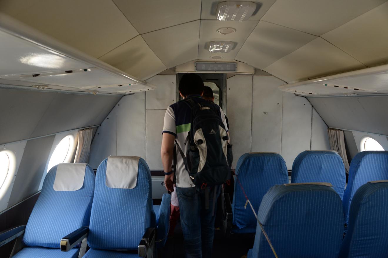 機内は古ぼけた感じがしますが、いたって普通の旅客機です。