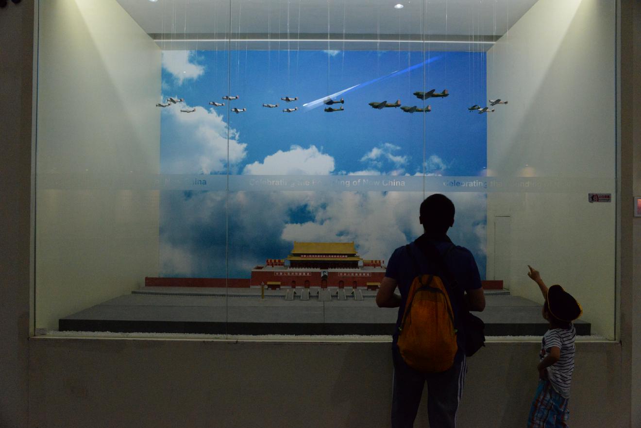 天安門上空を飛ぶ飛行機たち。閲兵式かな。