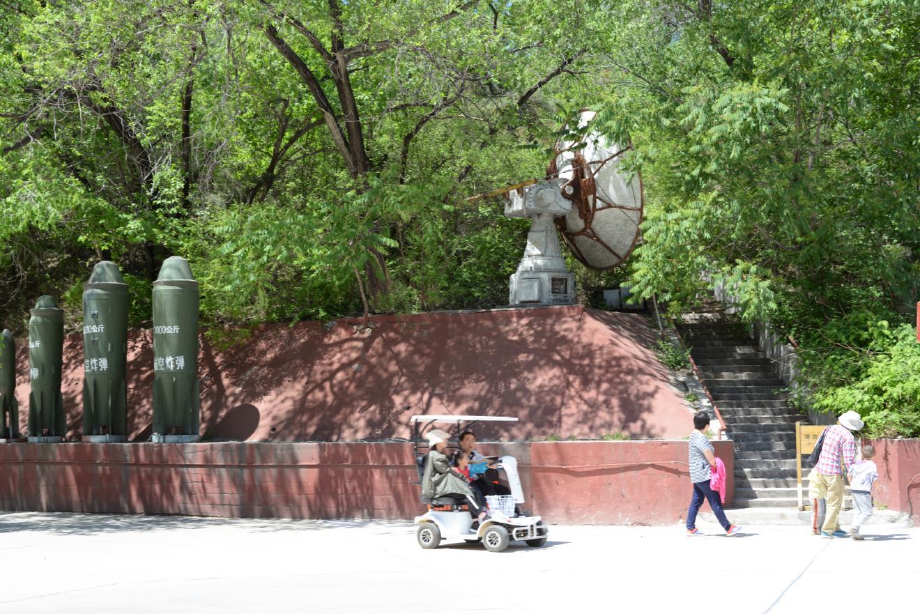 ミサイルの展示も。シニアカーに乗っているおじさんと比べると、その大きさがわかります。