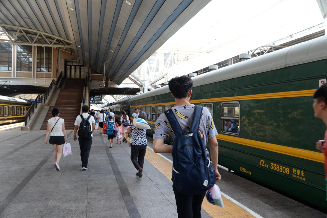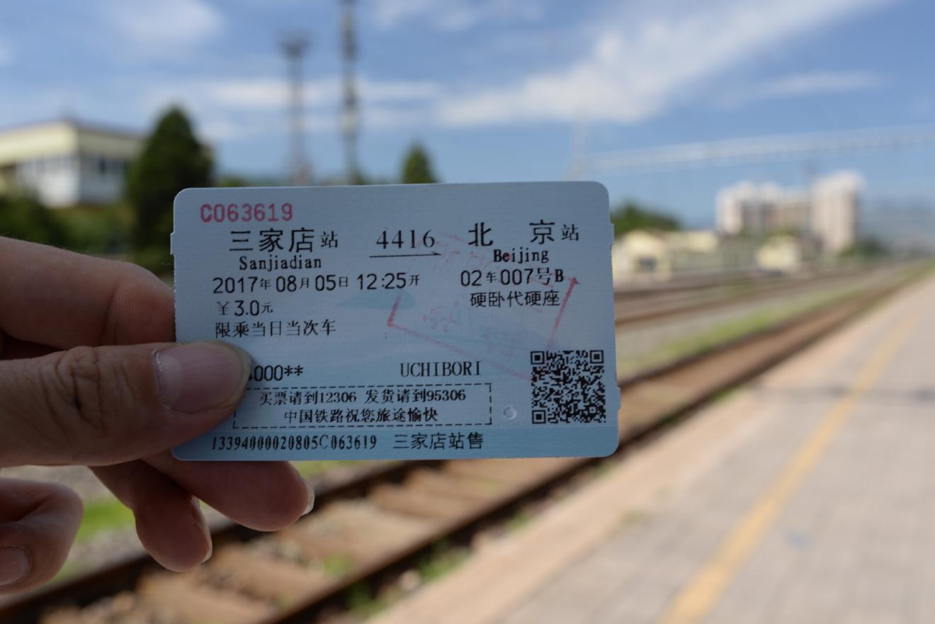 探索に行った日、三家店駅から鉄道で北京駅まで帰りました。硬座(2等車)で3元、予定通りだと50分ですが今回は途中でのろのろ運転の区間があって70分かかりました。途中、高速鉄道の一大ターミナル駅である北京南駅を経由しましたが、なぜか停車せず通過しました。利用者の利便性を無視する潔さを感じました。