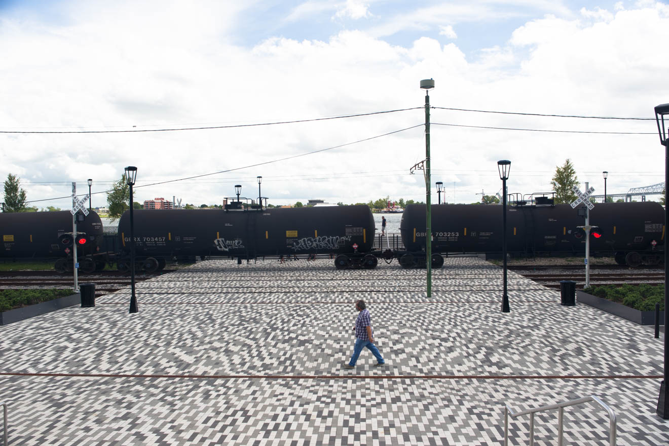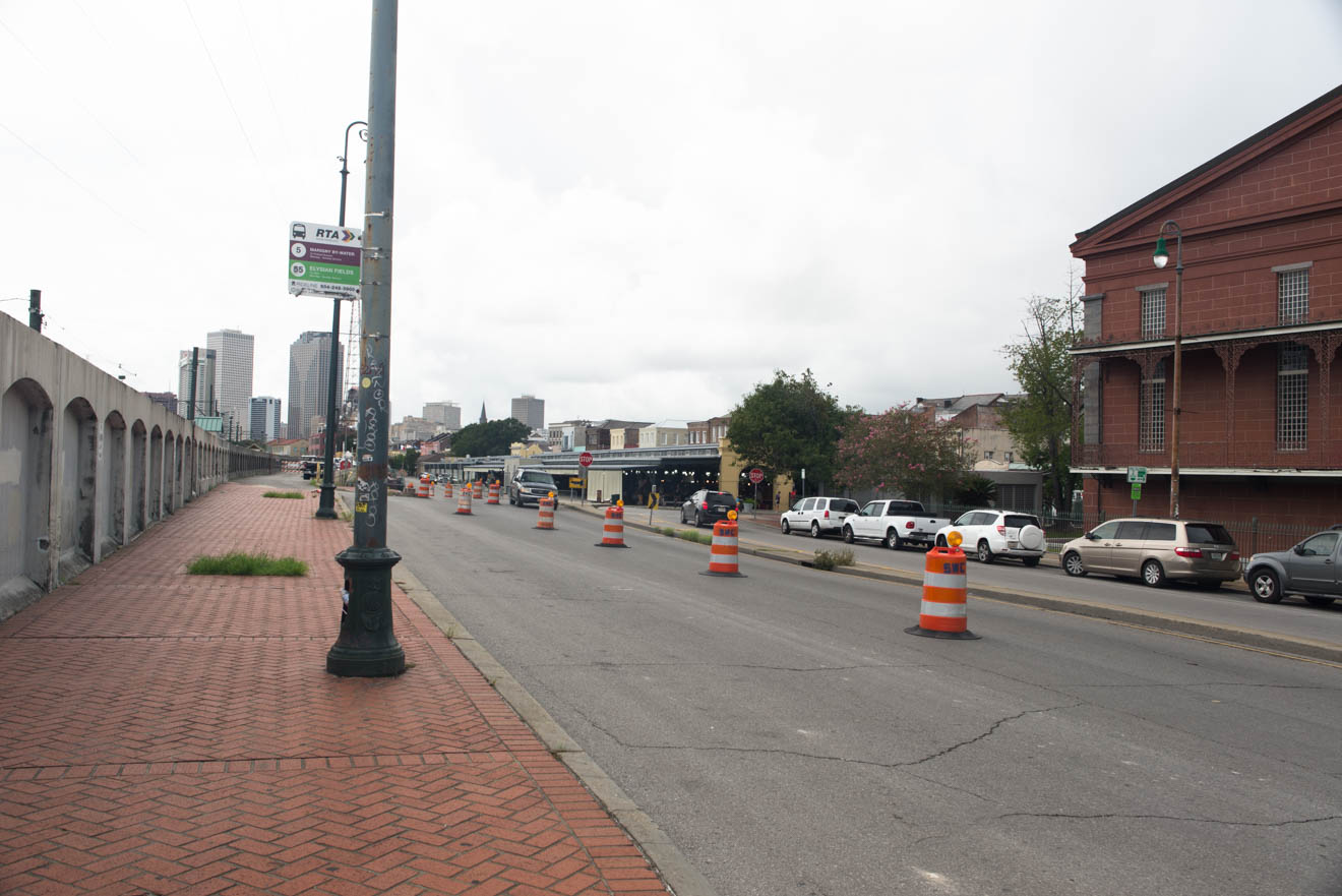 ストリートカーでフレンチ・マーケットの駅に到着します。