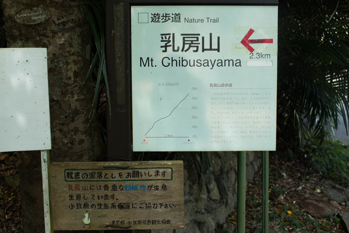 小笠原有人島の最高峰は乳房山(462.6m)です。母島中心部から山頂部を経て戻ってくるまで徒歩で4.5時間です。母島観光協会では左回りに回ることを推奨しています。そのほうが、下りに海が見えて景色が綺麗だからだそうです。地元の人のいうことは聞くべきですね。