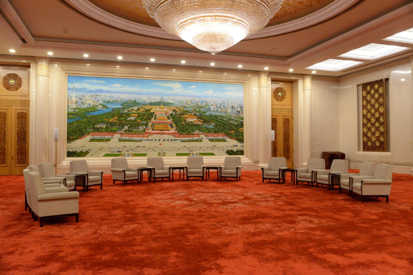 北京庁 | 人民大会堂を大解剖 30 Jun, 2017 世界 ! 北京の間、偉い人たちが会談しだしそうな席配置になっています。 ! レンズを換えて撮ると少しよく見えます。 ! ! シャンデリアはこんな感じ。きれいに撮れました。 ! 上海の間と同じく、階段を上がったところにあります。いいところに陣取っています。 ! #中国 #人民大会堂 #北京