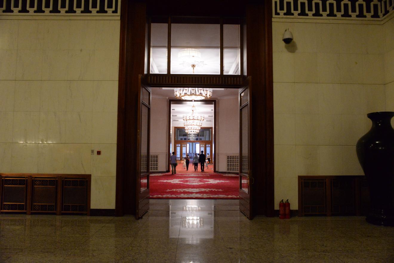 人民大会堂はさすがに外国の賓客を迎える場所だけあって、通路のあちこちに絵画や書、壺などが置かれています。