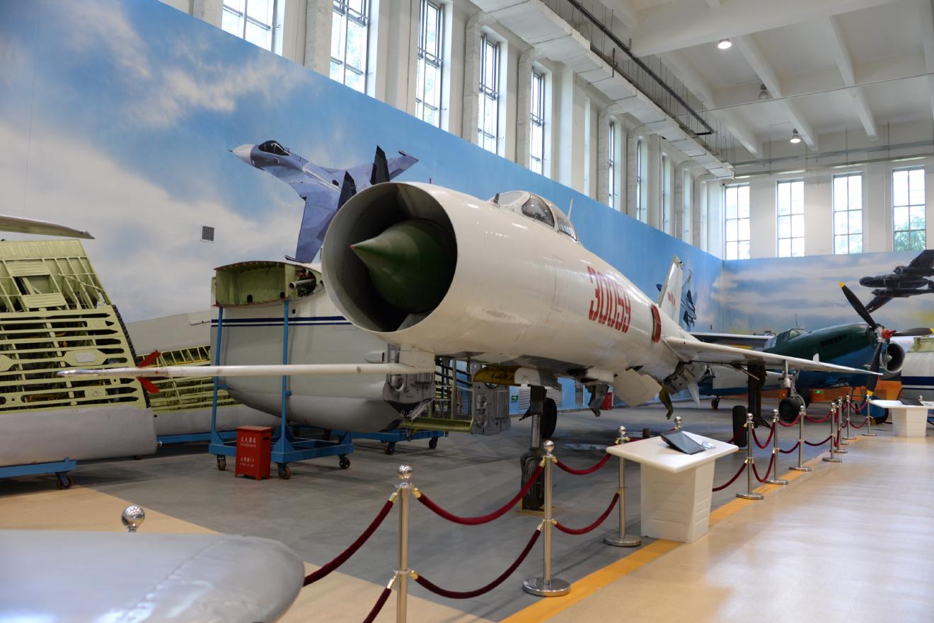 ソ連のミグ21戦闘機。1955年に初飛行しました。まだ多くの国で現役です。ぶつからないように赤いテープが取り付けてあります。