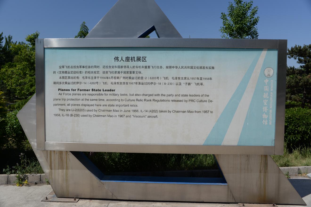 毛沢東主席の乗られたIl-18です。お金を払ったら見学ができます。中国ではお金を払えば見られるところが割とあります。