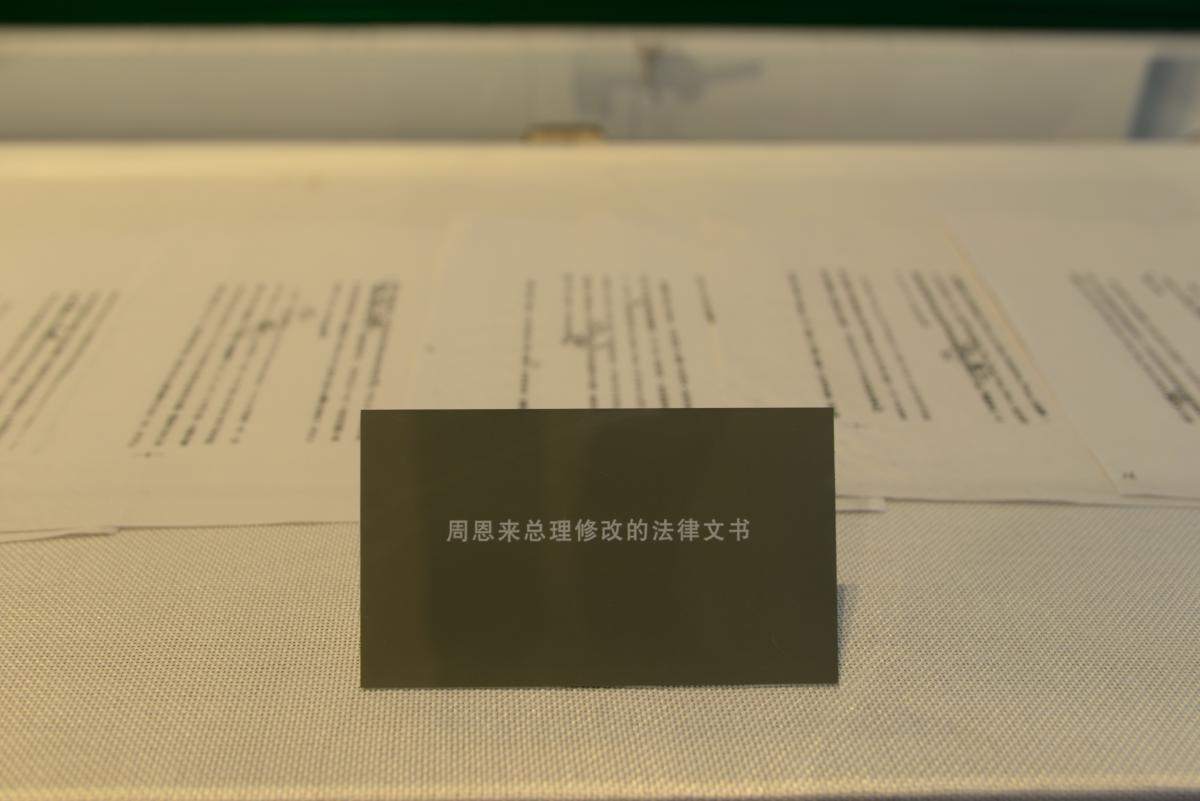 周恩来総理におかれては法律文書を御自ら修正された文書のレプリカです。