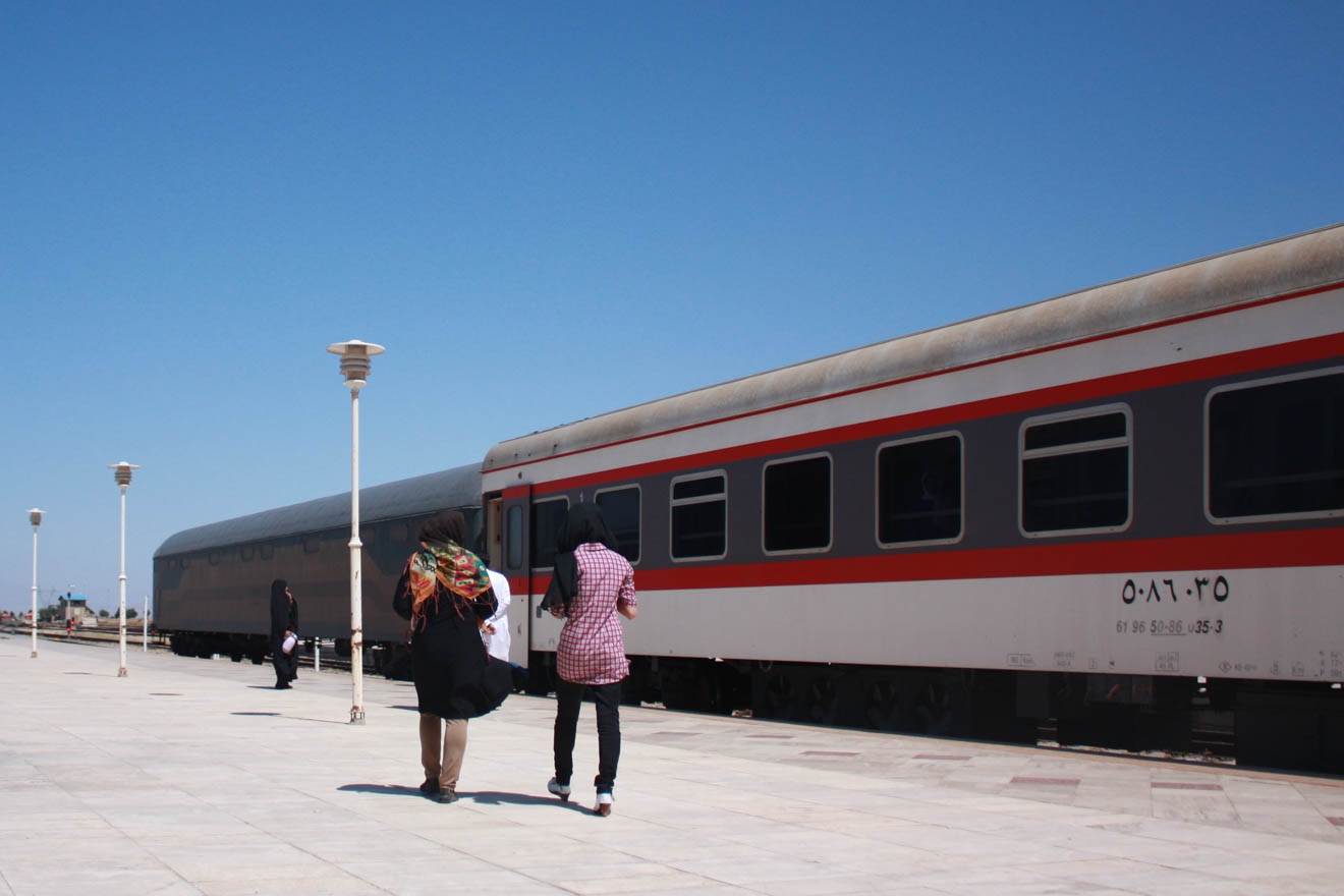 マシュハドからケルマーンへは列車で1本、10時間程度の旅でした。値段は寝台車で2000円程度だったと思います。夜行列車でした。 途中、ナマズ停車(夕方にある駅のモスクでお祈りするためだけの停車)もありました。 イラン人はフレンドリーなので車内で友人もできました。車両自体は中国製でした。最後尾には軍用車両もついていました(こういうのは撮ってはいけない)。