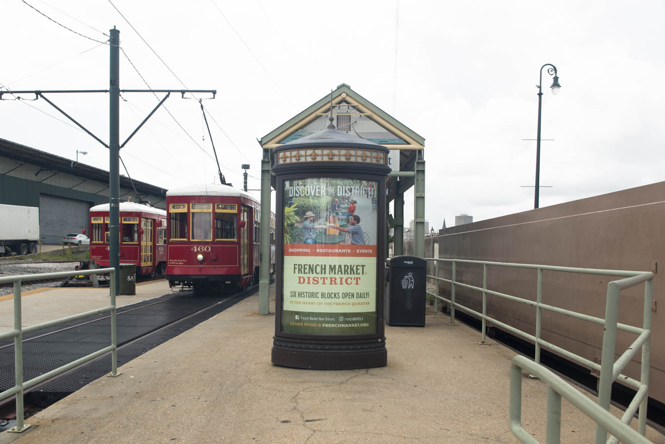 ストリートカーでフレンチ・マーケットの駅に到着します。